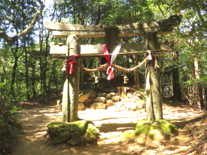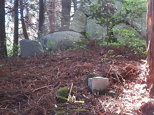 笛岳山頂 壊れかけた大きな石積み (国土地理院の点の記には、石塔と記載) |