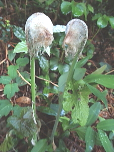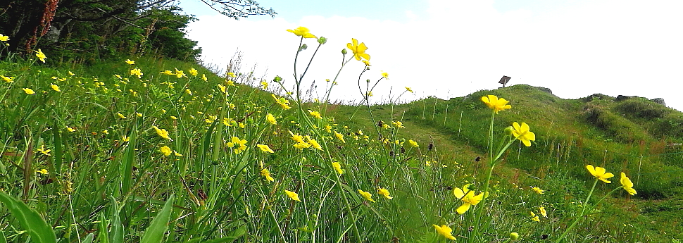 2025年5月7日 三週間ぶりに基山を訪れてみた。前回見頃であったオキナグサの花は少し残っているものの、多くは実を結んでいる。その花の跡には、種子を風で運ぶための綿毛が伸びている。そして、広い草はらや樹林の縁には、カノコソウやホウチャクソウなどが咲き始めている。 基山の頂は見晴らしが良く、麦が熟れ始めた筑紫平野は淡い黄色に染まりつつあった。 |