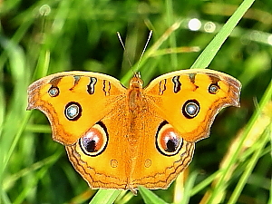 ![]() タテハモドキ 右は羽を閉じた姿(秋型)・頭部は→のところ |