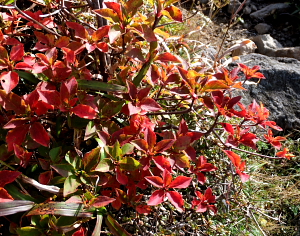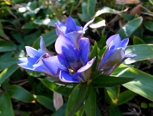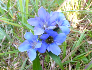 2012年9月26日 朝の気温は10℃。爽やかな青空の中を大船山へ向かう。雨ヶ池のヤマラッキョウの群落は以前に比べて小さくなっているものの、花はちょうど見頃。近づくと、ラッキョウの淡い香りが漂ってくる。道沿いに連なるマツムシソウを愛でながら、坊ガつるへ下る。 帰りに体力と気力が残っていれば登る予定の、三俣山への分岐点を確認して坊ガつるへ。坊ガつるの草原から、段原への登りにかかる。 段原には、数輪のリンドウが咲いている。ひと息入れ、大船の山頂へ向かう。大船の山頂からは久住の峰々が間近に見え、南には阿蘇や祖母の山並みも見える。山頂の御池周辺は、木々の緑が薄れて紅葉の時期は近いようだ。 坊ガつるまで引き返したところで時計を見ると、日暮れまでにはかなりの余裕。疲れもさほどないことから、三俣山へ向かう。久住の中では屈指の急坂をゆっくり登る。中腹からは、黄色くなり始めた坊ガつるの草原や大船山の大きな山容が見える。 三俣山の南峰に着くと、たくさんのリンドウが。今が盛りに咲くリンドウを眺めながら、本峰、W峰、西峰を経て諏蛾守越へ下る。諏蛾守越では、ひと休みして長者原に戻った。 |