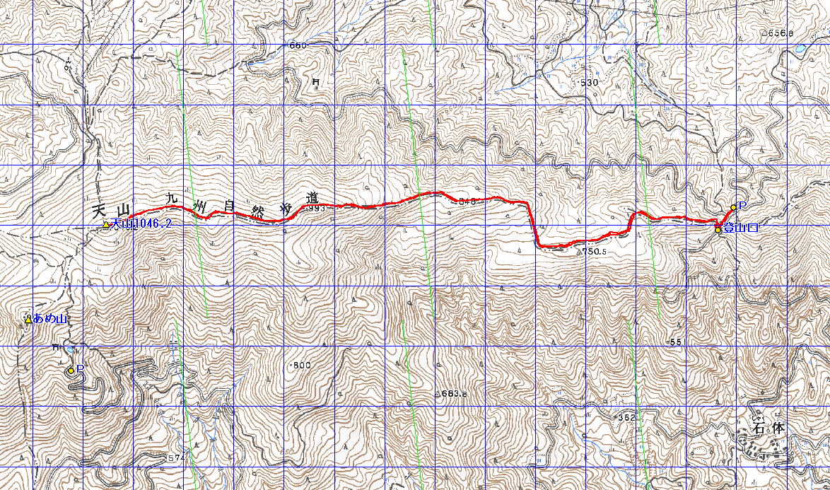 経路概念図 GPS軌跡 1/25000地形図 緯線の間隔10秒、距離約310m 経線の間隔10秒、距離約250m