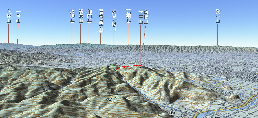 3D 設定:対地高度680m レンズ16mm +日本山名データ25000