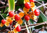 2014年1月11日 山友さんからお誘いを受けて、干支の山登りに参加。参加者は、 宮崎、熊本、それに福岡県からの総勢30数名。 住吉神社そばの駐車場に集合して、御所ヶ岳に向かう。規模の大きな神籠石を見てさらに登ると、斜面に、シダの一種で珍しいヒモヅルも見える。 御所ヶ岳の山頂は南方向が開け、眼下には幾つものため池や今川の流れが光って見える。残念なことに、この日も大気が濁り、英彦山や犬が岳などの山影は全く見ることができない。 御所ヶ岳から、一旦下って登り返すと馬ヶ岳である。馬ヶ岳は今年の干支に重なる山であり、大河ドラマ黒田官兵衛の居城としても有名になったところで、山頂はたくさんの登山者である。 馬ヶ岳から二の丸に立ち寄り、大谷登山口へ下山。そこから車道を歩いて出発地点に戻った。 この後、次の干支の山である嘉麻市の白馬山へ車で移動。 |