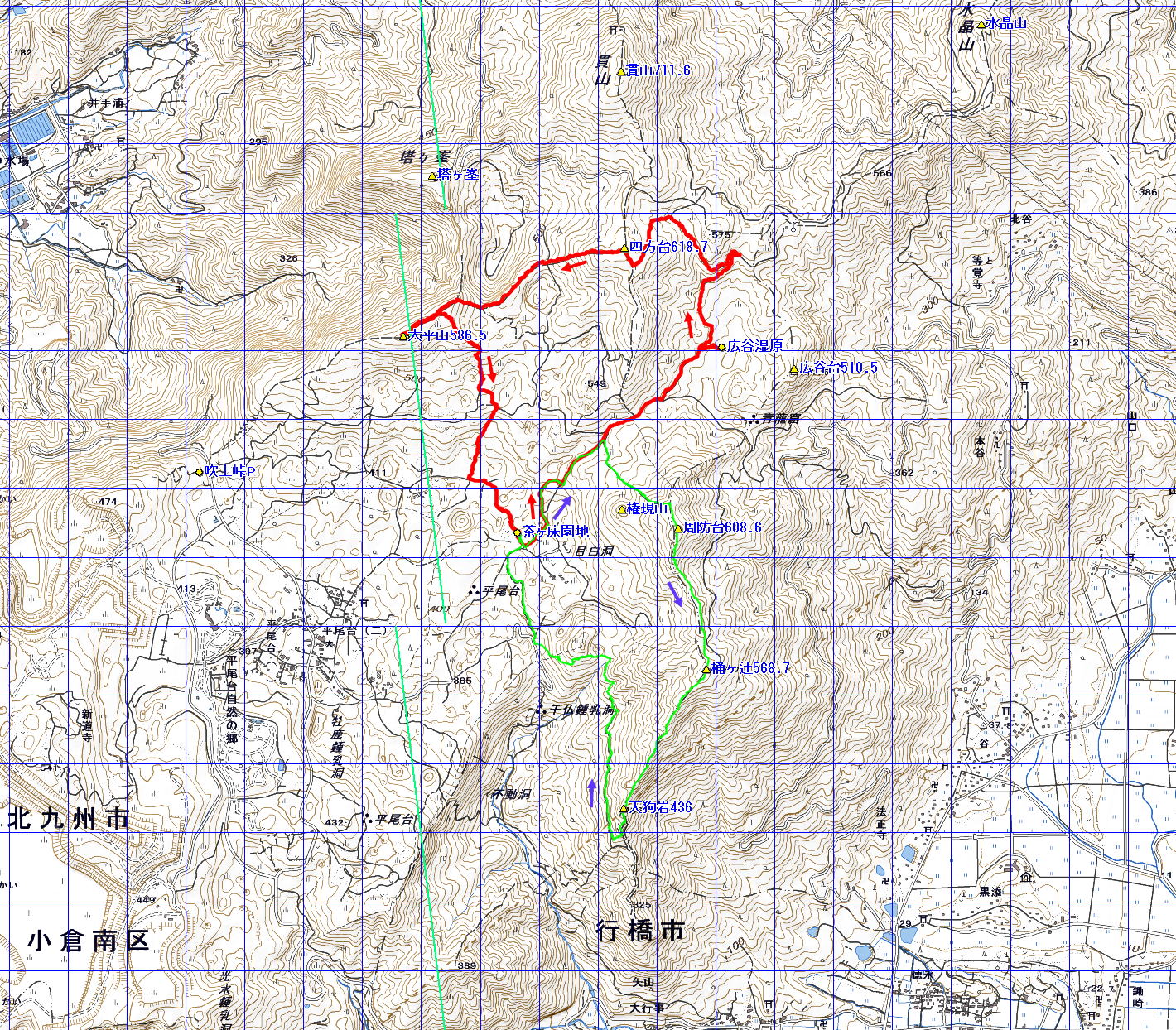 | 平尾台:Bコース (緑のライン) 「かわせみ」 : 周防台 桶ヶ辻 天狗岩 (福岡県 14.08.21) |