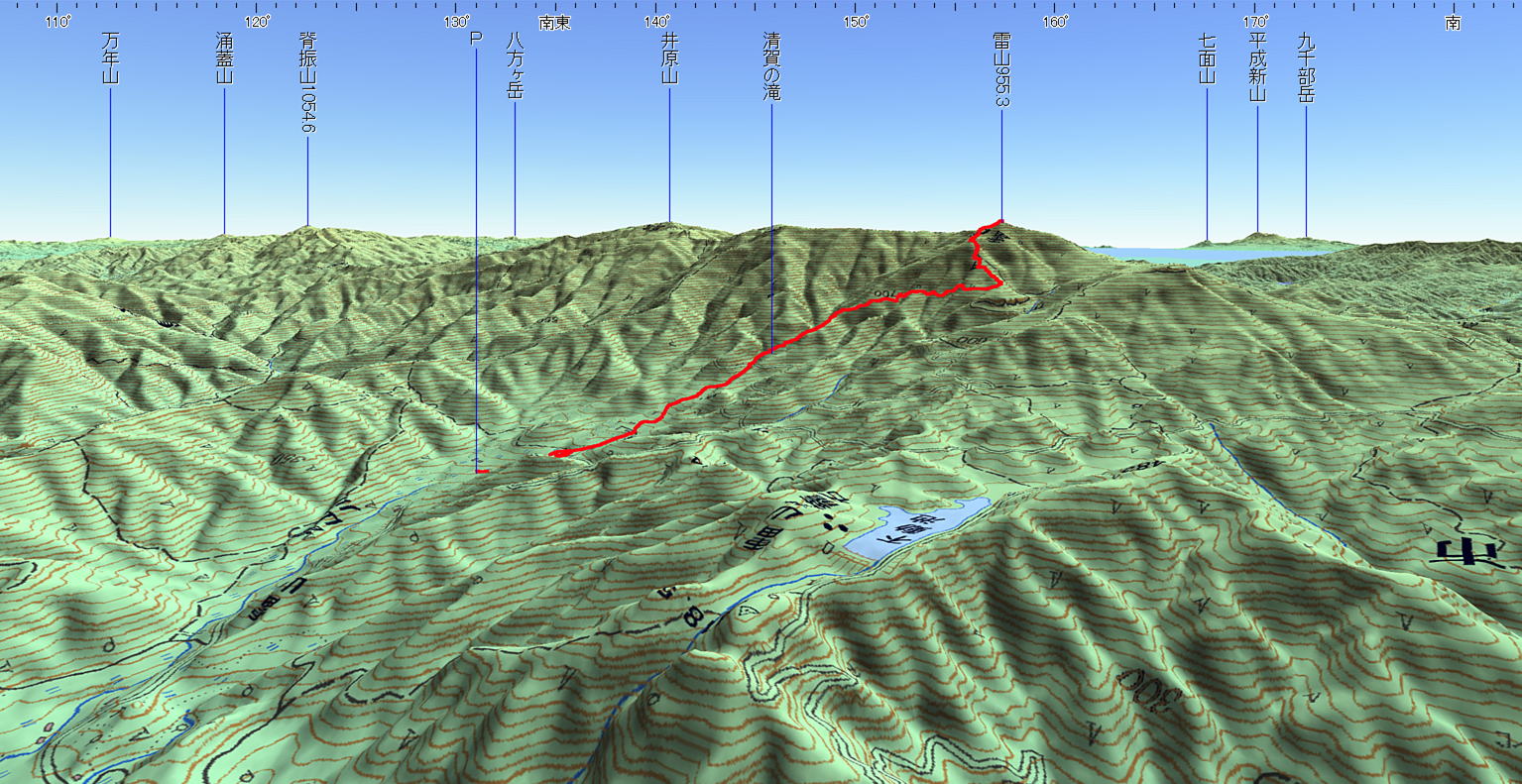 3D 設定:対地高度840m レンズ16mm 日本山名データ25000+追加地名