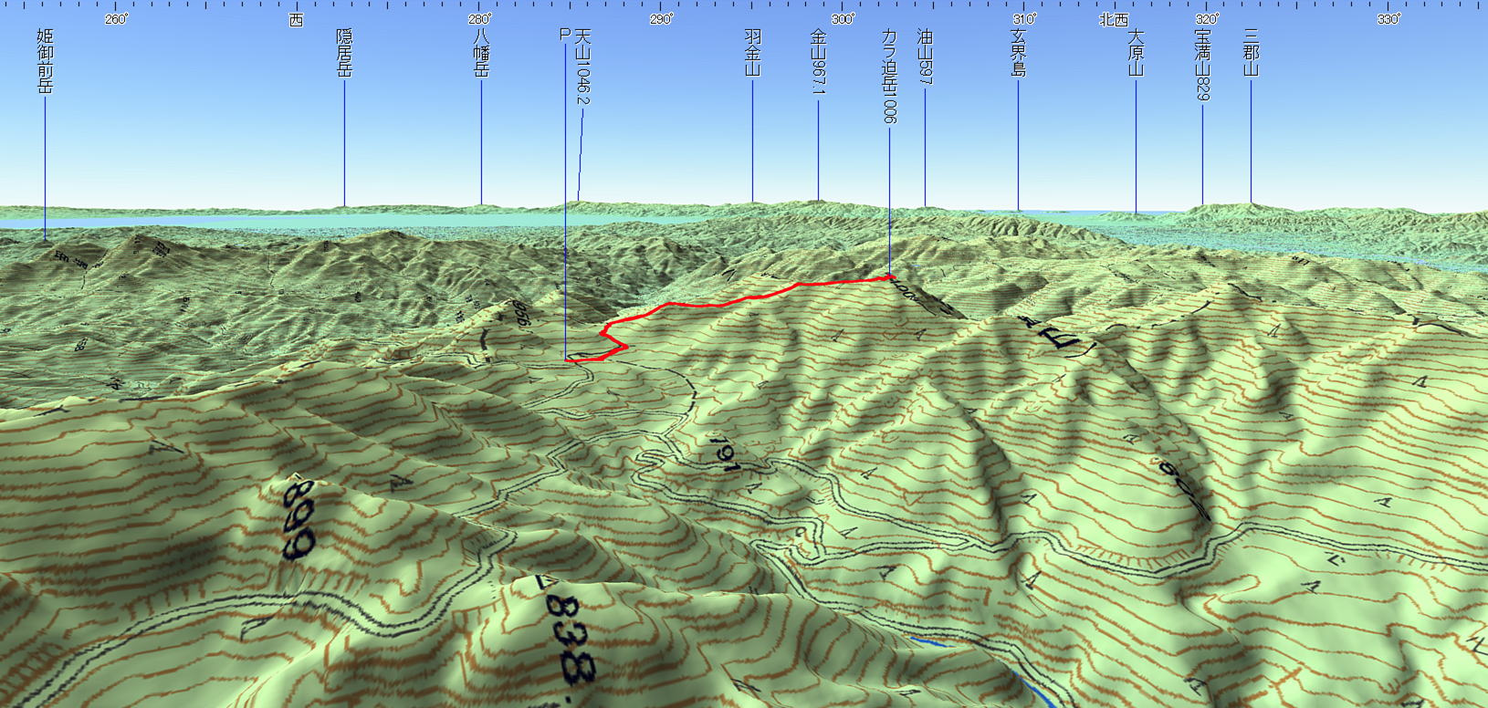 3D 設定:対地高度570m レンズ16mm 日本山名データ25000+追加地名