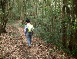 2015年12月28日 冬休みのT君を誘って三郡山へ。登山口は飯塚市の茜屋(あかねや)。登山口には、登山者用の駐車場がある。しかし、チェーンで閉鎖中。仕方なく、他車の通行に支障がないところを探して路上に駐車。 車道を進み、人工芝スキー場の柵に沿って登る。 白糸ノ滝で写真を撮り、やがて鎖場へ。T君は鎖に頼らず、自分で手がかり足がかりを探しながら無難に登る。 汗がにじみ始めたところで防寒着を脱ぎ、衣服調整。やがて尾根に出て、作業用の車道を横に見ながら、自然林の尾根を登る。途中で桃を連想させる花崗岩の大岩を発見。T君は早速、大岩の割れ目に入って気分は桃太郎に。 山頂に近づいた所で車道に出る。車道をしばらく進み、帰りに下る分岐点を確認して山頂へ到着。 山頂から見る遠景は霞み、気温は零度。吹きわたる風も冷たい。時刻は11時過ぎ。 T君に、早いお昼ご飯を提案してみた。ところが、彼は寒いこともあって「車まで下りて食べる」との意向に早速下山を開始。 先ほど確認した分岐点まで引き返し、電柱コースと呼ばれるルートに入る。分岐点に道標はなく、小さなテープがあるだけである。 分岐点からの踏み跡は極めて薄く、地図を見、目印を確認しながら自然林の中を下る。 目印の間隔が遠いところは、時々現れる電柱や木の葉の間から僅かに見える電線に沿って下る。 T君は、落ち葉が積む急坂を立木につかまり、繰り返し尻もちをつきながらも元気に下る。 やがて電線と別れ、人工林の中を下ってキャンプ場に出会い、ほどなく駐車地へ戻った。 帰りに下った電柱コースは、踏み跡が極めて薄く、樹林の中を通っていて見通しも悪い。加えて、傾斜が緩む辺りからは尾根の幅も広くなって地形の特徴を見極めにくくなるなど、現在位置が確認しづらい。 これらのことから、このコースは一般的ではないように思う。 |