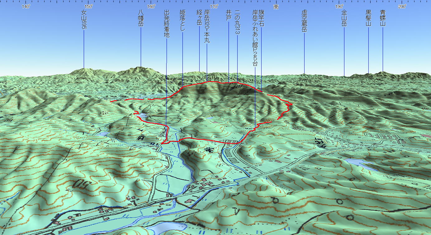 3D 設定:対地高度370m レンズ16mm 日本山名データ25000+追加地名