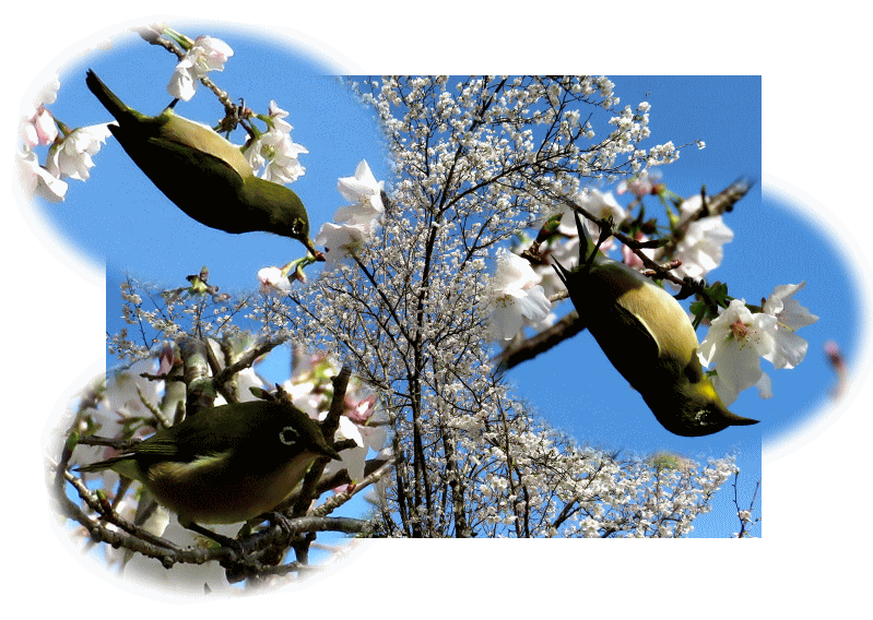 ![]() 満開の桜にはメジロがいっぱい |