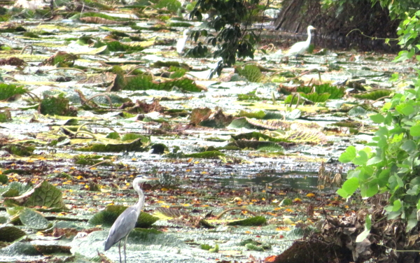 手前はアオサギ、奥はオオサギ |