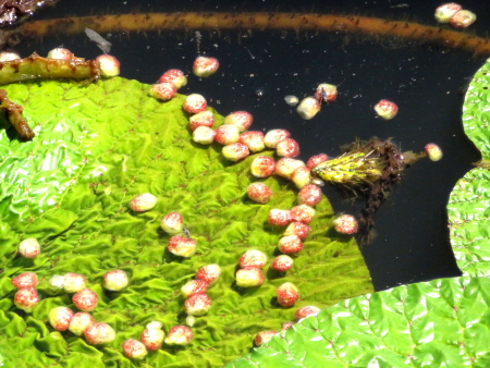 果皮が敗れて出てきた、オニバスの種子 |