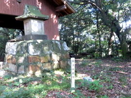 山頂(小郡市側) 山隈城本丸跡の記念碑がある |