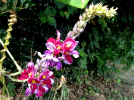 2021年8月29日 花立山は三週間ぶり。前回たくさん咲いてたヤブミョウガはほぼ終盤。今回多く見られたのは秋の七草の一つ、クズの花であった。 下山のあと、オニバスが見られる池を訪ねてみた。 めあては、スイレンの仲間といわれるオニバスの花。 実は数日前から度々訪ねていて、今日で4回目。 1回目、2回目は、蕾を見つけることができなかった。そして、3回目の昨日、ようやく紫の花弁が少し見える蕾を見つけた。 そこで、今日は咲いているだろう、と期待をして訪ねてみた。ところが、空振り。 蕾は昨日と同じ状態で、花弁が少し見えるだけ。 私たちにとっては手強い花であるが、これであきらめずに、また訪ねてみたい。 |
