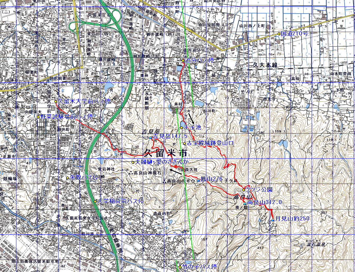 注:出発地は追分バス停、終着地は久留米大学前バス停