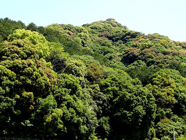 新緑に包まれた照葉樹の山 |