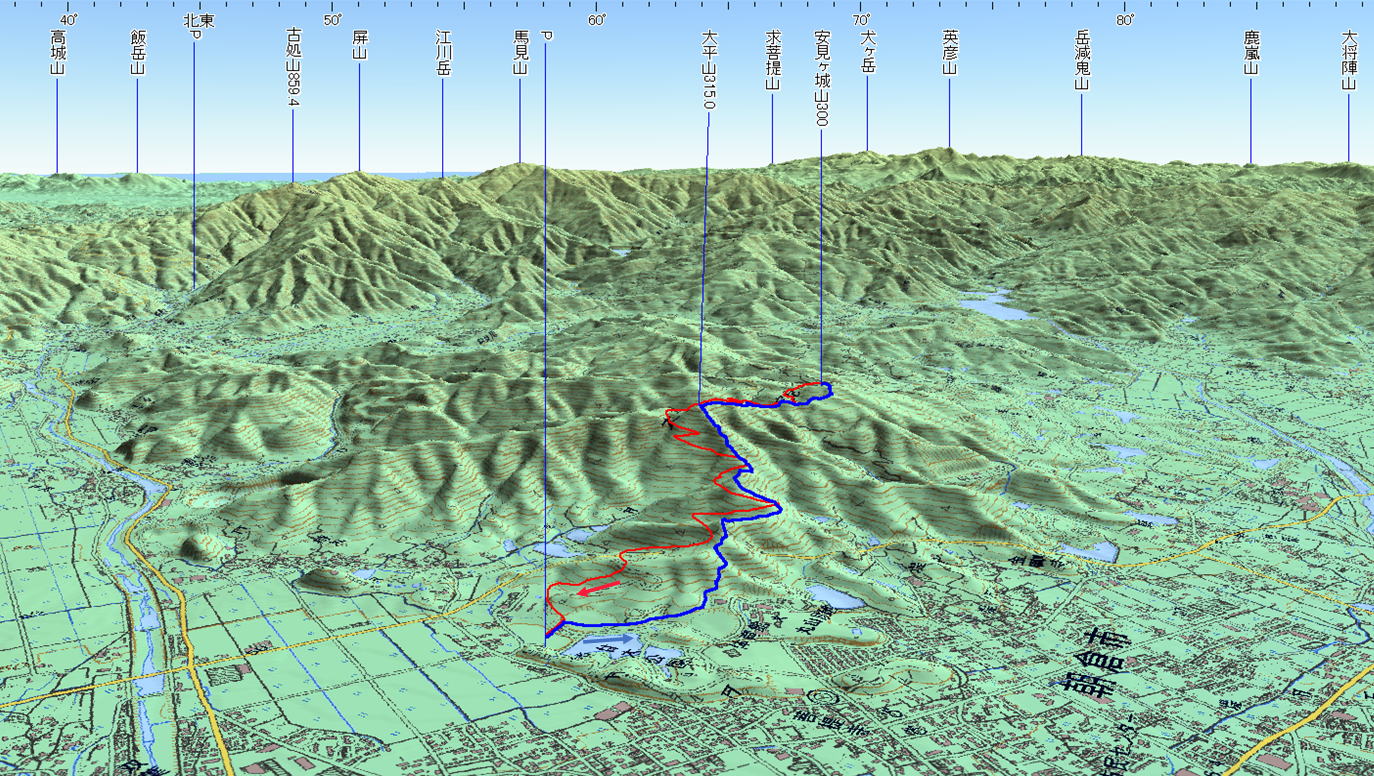 3D 設定:対地高度1100m レンズ16mm 日本山名データ25000+追加地名