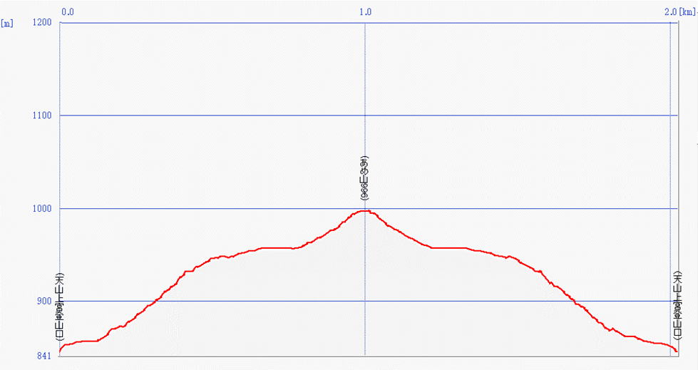 | 経路断面概念図 GPSデータ+10mメッシュ標高データ 断面の沿面距離約2.1km 所要時間1:20 |
