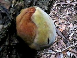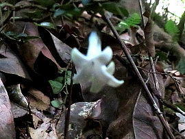 2024年5月15日 一年ぶりに白馬山から大法山を周回した。ルートには古木が見られ、中でも赤っぽい幹のバクチノキ(博打の木)は珍しい存在である。その名の由来は、「博打に負けて、衣を剥がれるのにたとえた」とされている。このたとえは、現在に通じる戒をも含んでいるのであろう。 湿気の多い谷には、ウドカズラの長い気根が幾筋も下がっている。ここは人家に近い里山であるが、辺りは奥深い山の雰囲気であった。 |