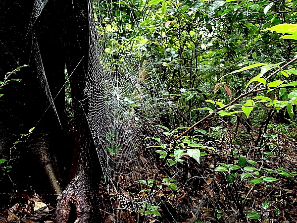 水滴をつけた大きなクモの巣 |
