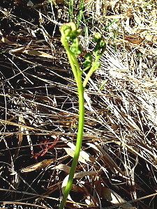 2024年8月1日 今日の目的は、スズサイコの花である。二週間前に登った時は、咲き始めたところであった。 ところが、現地に着くと広い草はらはすっかり刈り払われて、一面に枯れ草の状態になっている。スズサイコの花が咲いていた辺りには、春と同じような若いワラビがたくさん立ち上がっていた。^^;; 気を取り直して、周回路を進む。道沿いにはアキノタムラソウやクサギが咲き、ヤブコウジの小さな実が時折目に入る。 谷筋を下っていると、白いフユイチゴの花が一輪咲いていた。この花はこれから秋にかけて咲き続け、冬には赤い実をたくさんつける。 |