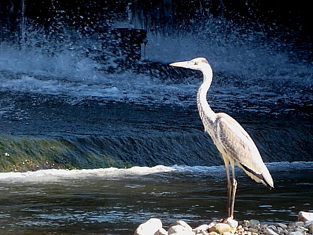 魚が近づくのをを待つアオサギ |