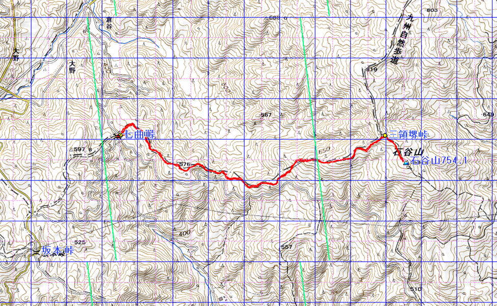 石谷山(佐賀県 24.08.04) 経路概念図 GPS軌跡 1/25000地形図 緯線の間隔10秒、距離約310m 経線の間隔10秒、距離約250m 緑の直線は磁北線 注:出発終着地は七曲峠 D 設定:対地高度1600m レンズ16mm 日本山名データ25000+追加地名 経路断面概念図 GPSデータ+10mメッシュ標高データ 断面の沿面距離約5.8km 所要時間3:10