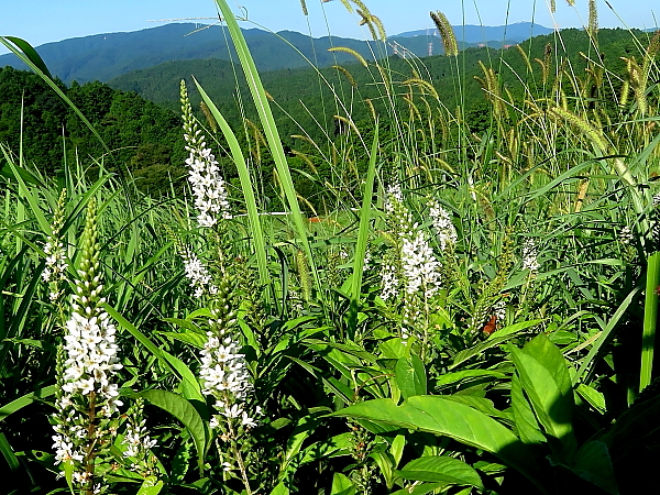 2024年8月8日 昨日は立秋。とはいうものの、このところ異常な猛暑が続いている。そんな中、夜明けは次第に遅くなり日没も早くなってきた。そこで、秋の気配を探しに基山を歩いてみた。 まず気づいたのはバッタ。草はらを歩くと、足元から次々に飛び立つ。二週間前に比べて、その数はかなり増えたようだ。 しばらく進むと、「ホーホケキョ」。今日もウグイスのさえずりが聞こえる。ウグイスのさえずりが聞かれるのは、例年お盆の前頃までである。さて、猛暑の今年はいつまで聞かれるのであろうか。 カワラナデシコは夏草の中にたくさん咲いて、見頃を迎えている。シュロソウはあちらこちらにつぼみが立ち上がっており、その花を探しながら進む。すると、数輪の花が咲く一株に出会った。バーソブも、たくさんのつぼみが育っている。それらを見渡していると、一輪の花が咲いていた。 この山は、これから色々な秋の花が咲く。それらを楽しみに、また訪れてみたい。^^♪ |
