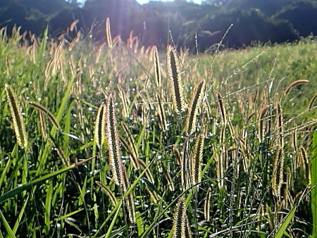 朝日に映えるキンエノコロ |