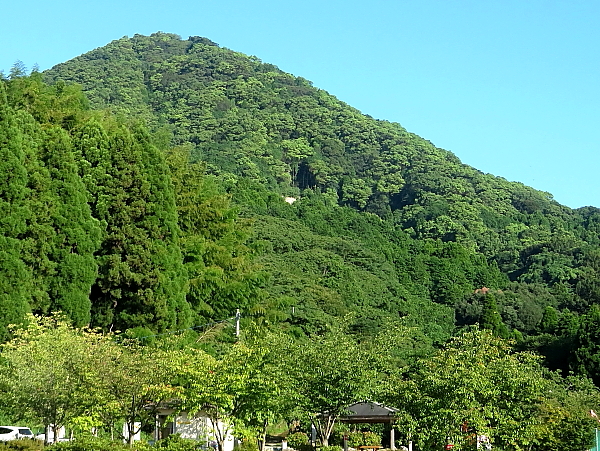 登山口の山田水辺公園から望む鷹取山 |