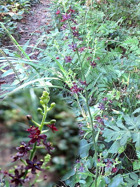 2024年8月27日 基山を歩くのは十日ぶり、今月に入って三回目である。訪ねる回数は多いものの、咲いている花は毎回のように発見があって興味深い。 今日新たに咲いていたのは、ゲンノショウコやナンバンギセル、それにスズムシバナなどである。中でもスズムシバナは、前回も様子を見た。しかし、その時はつぼみも見えず、花の気配は全くなかった。それが今日は涼やかな花をつけていて、嬉しく思う。^^♪ |