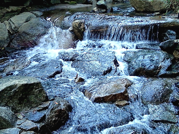 道沿いの渓流 |