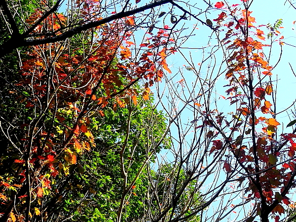 | 2024年11月13日 麓の公園から山頂を経て、日の尺池へ周回した。秋は進み、山中にはツタやラクウショウ(落羽松)などが色づき始めている。山道にはイナカギクやアキノタムラソウ、それにハギなどの花が僅かに残り、今を盛りに咲き誇っているのは、黄色いツワブキである。 そして、咲き始めていたのは春に盛りを迎えるスミレである。「秋にスミレの花を見た人は良いことがある」と言われ、これからしばらくはスミレの花を探しながら歩いてみたい。^^♪ |