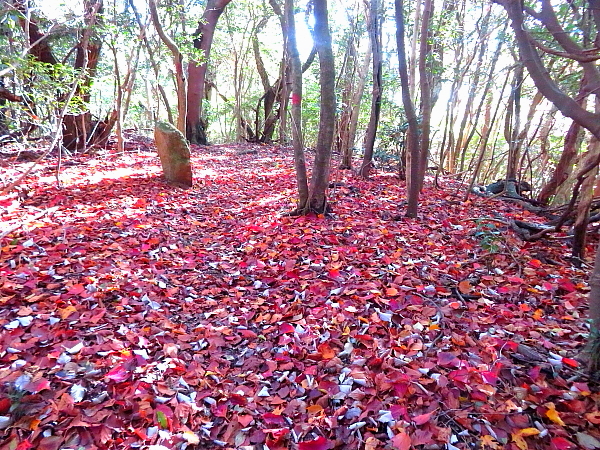 登山道を覆う落葉 |