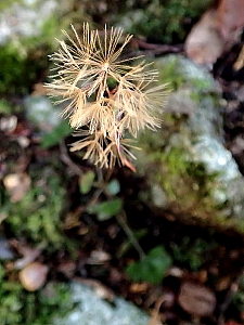 キッコウハグマ・花のあと 写っているのは冠毛 冠毛の基部には細い実がついている |