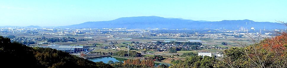 山頂からの眺め 中央奥は九千部山 |