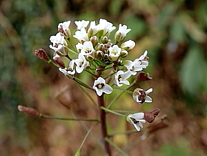 2024年12月29日 咲いている花の種類は少なくなったものの、山中には赤いサザンカが咲いている。そして、日当たりのよい周回路には草花のホトケノザやナズナ、それにスミレなども咲いていた。 年を越してもう少し寒くなれば、今見られる草花は咲くのを止め、野道は真冬の風景になる。そんな思いを巡らせながら、冷たい北風の中を歩く。しばらく進んだところで、今度はウメの大木に出合った。近寄ると、細い枝にはたくさんのつぼみが着いている。その小さなつぼみは春に向かって、早くも膨らみ始めていた。^^♪ |