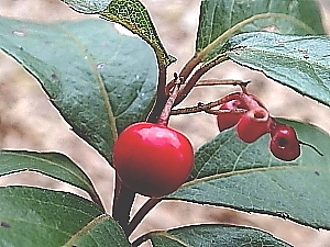 マユミの実・殻 殻の中の赤い実はなくなっていた 鳥に食べられたか、落ちたのであろう |