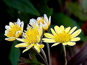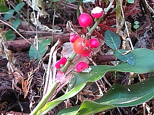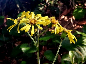 2025年1月2日 「ツバキが咲いている」との情報を思い出して登ってみた。山道の北風が当たらない日だまりには、シマカンギクやツワブキ、それにヨメナなどが咲いている。今の時期にしては、思いがけない花々である。目当てのツバキはピンクの花を幾つもつけ、冬の陽射しを浴びて美しく咲いていた。^^ |