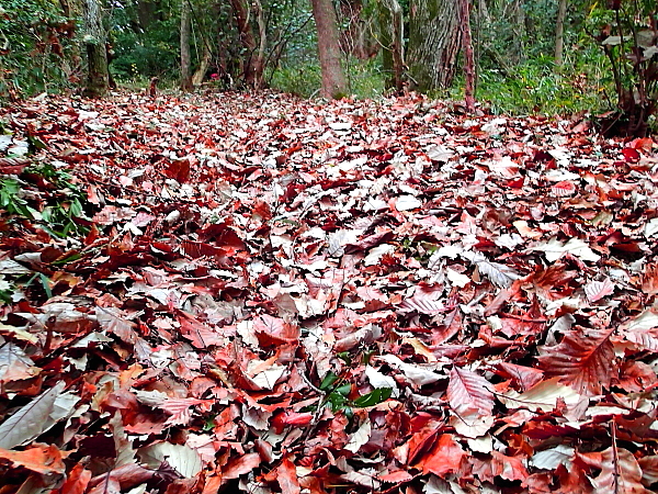 登山道に積む落ち葉 |