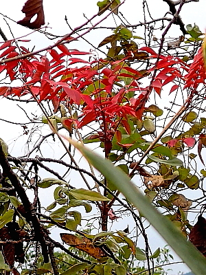 2025年1月4日 日当たりの良いところにはタンポポやホトケノザが見られ、山に入るとシマカンギクやツワブキも咲いている。 この山に前回登ったのはひと月前。その時には気づかなかったクチナシの実は赤く色づいている。今回その赤い実を見つけることができたのは、このところの寒さで周辺の木々の葉が落ちたからであろう。 山頂は見晴らしが良く、麦の芽が出た佐賀平野が淡い緑に染まり始めていた。 |