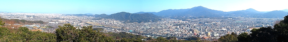 山頂からの眺め 福岡都市圏の街並み 中央左は四王寺山 |