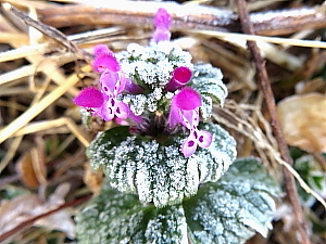 霜を結んだホトケノザ |