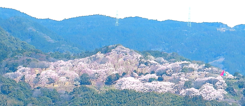 | 佐賀平野から見る籾岳の千本桜 3月25日に登った時は数輪が咲いているだけであったが、今日は満開に |