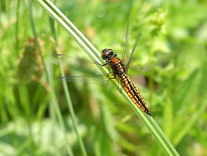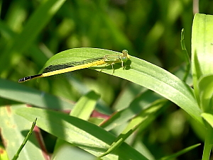 ハッチョウトンボのオス・未成熟 成熟すると真っ赤に |