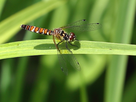 2025年5月31日 ひと月前に花が咲き始めていた、ハナイカダの様子を見に登ってみた。花が咲いていた緑の葉の上には、それぞれ一粒の実を結んでいる。その状況は木による差があるものの、全体的な結実は良さそうであった。 下山の後、樫原湿原を訪れた。湿原には淡いピンクのトキソウがたくさん咲いて、見頃を迎えている。その周辺では色々なトンボが見られ、小さなハッチョウトンボにも出会った。このトンボのオスは成熟すると真っ赤になる。しかし、今年は成熟が少し遅れているようで、オスは赤くなり始めたところであった。次はオスが赤く染まった頃に、また訪ねてみたい。 |