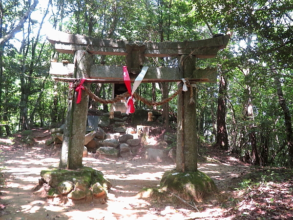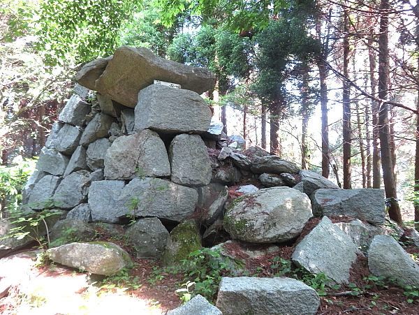 笛岳山頂 壊れかけた大きな石積み (国土地理院の点の記には、石塔と記載) |