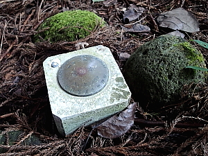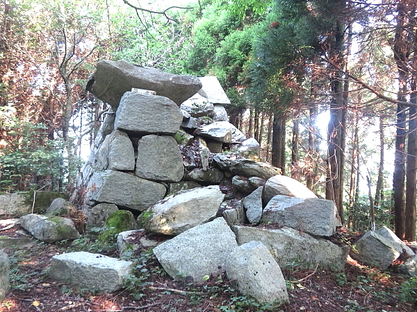 笛岳山頂 2005年の福岡西方沖地震で壊れたという大きな石組 (国土地理院の点の記には、石塔と記載) |