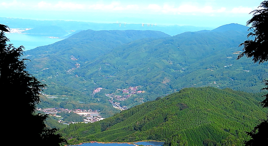 山頂からの眺め 左奥は唐津湾 |