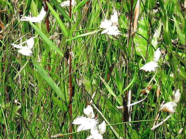 2025年9月3日 ひと月ぶりに笛岳へ登ってみた。山道にはヤブハギやキンミズヒキ、それにオトコエシなどが咲いている。オトコエシの白い花を眺めていると、ブルービーがやってきて花から花へと忙しそうに飛び回る。辿り着いた山頂は一部が開けており、そこからは樹木の間に唐津湾が少し見える。 下山の後、樫原湿原を訪れた。湿原の標高は600mほど。標高が高い湿原は、一足早い秋の気配である。散策路には秋の七草であるハギやオミナエシが咲いて、ススキの穂も出始めている。そして、水辺にはおまけのカワセミもやってきた。^^♪ |