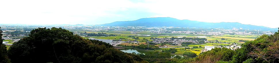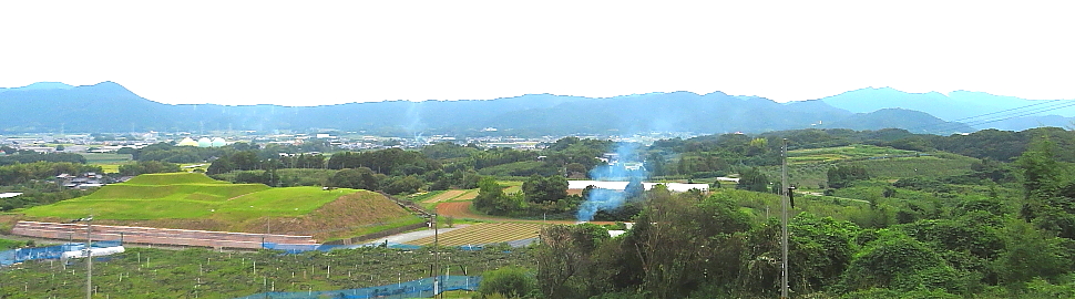 | 中腹からの眺め 左、緑の丘陵は焼ノ峠古墳 |
